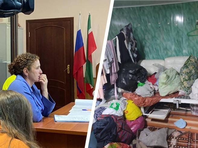 На снимке слева изображена хозяйка пансионата Чулпан Мифтахова, справа — условия содержания в здании во время обыска.