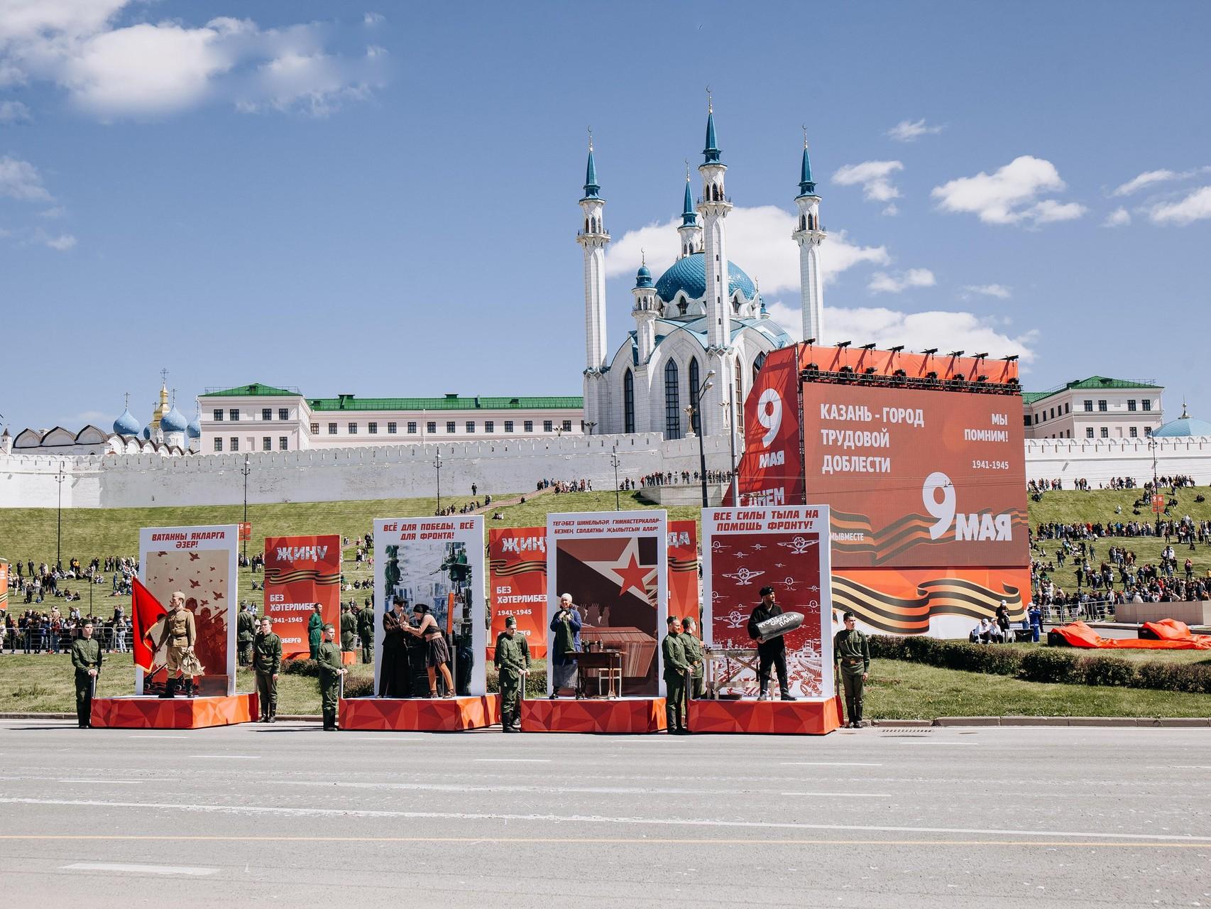 В дневное время 9 мая запланированы выступления танцевальных коллективов, хора, певцов и певиц, имеющих звание не ниже «Народный артист Татарстана». Завершится дневная часть театрализованным представлением.