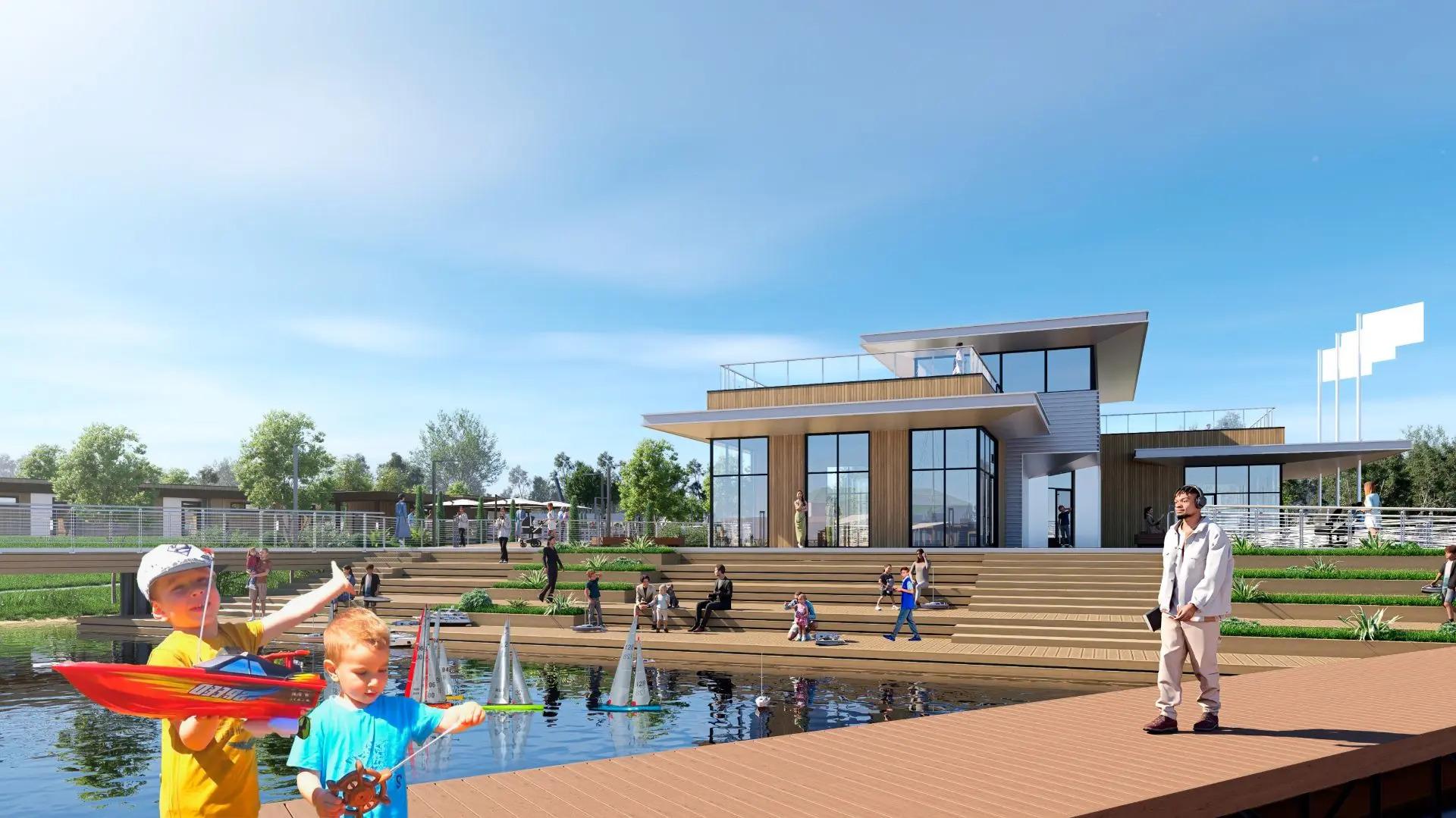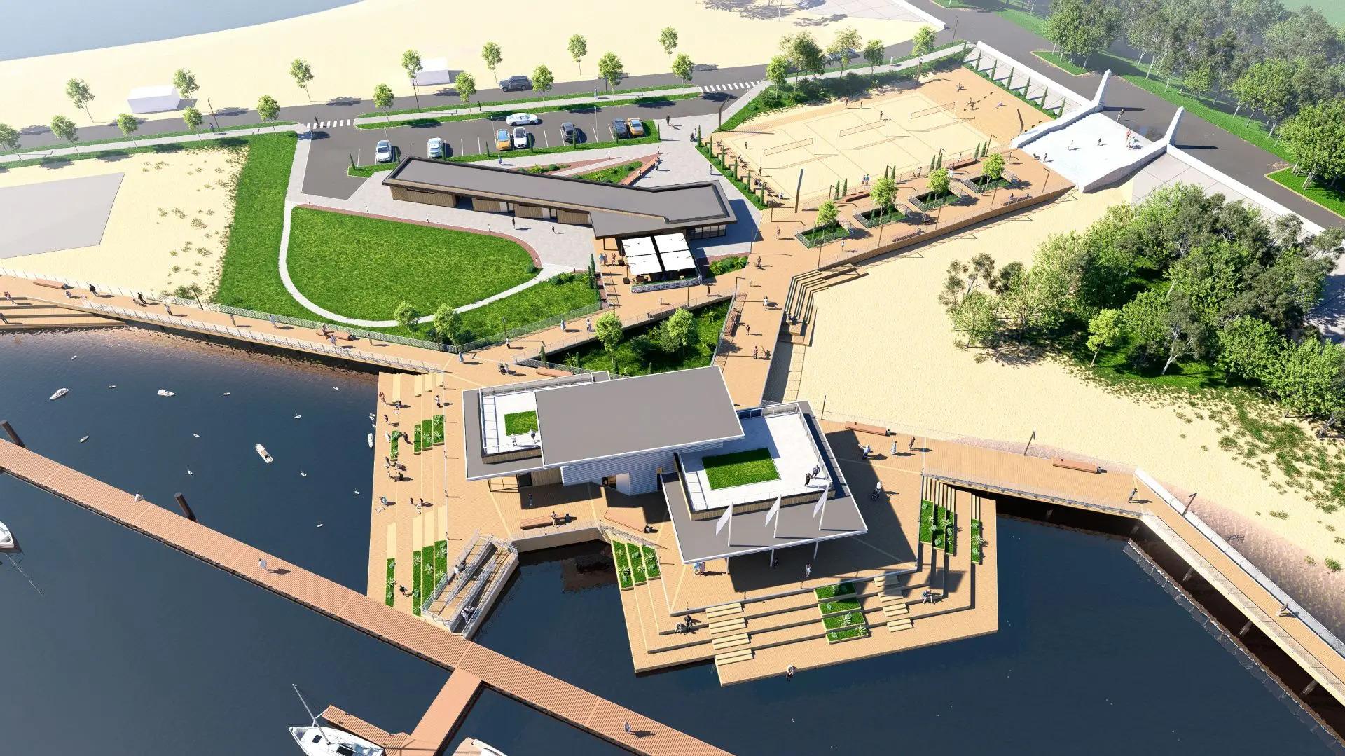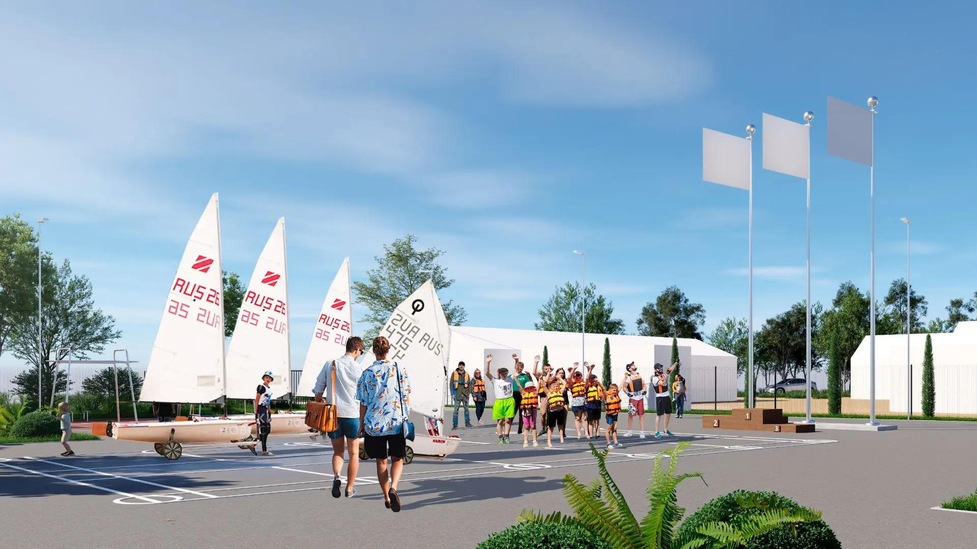 Первый участок отведен под территорию детской парусной школы «Авиатор». Здесь появится современная тренировочная база с классами для занятий, тренерскими, раздевалками, сушилками, мастерской по ремонту инвентаря и эллингом для хранения спортивных яхт. Для безопасного спуска к воде оборудуют спортивный слип с огороженной зоной на северном берегу.