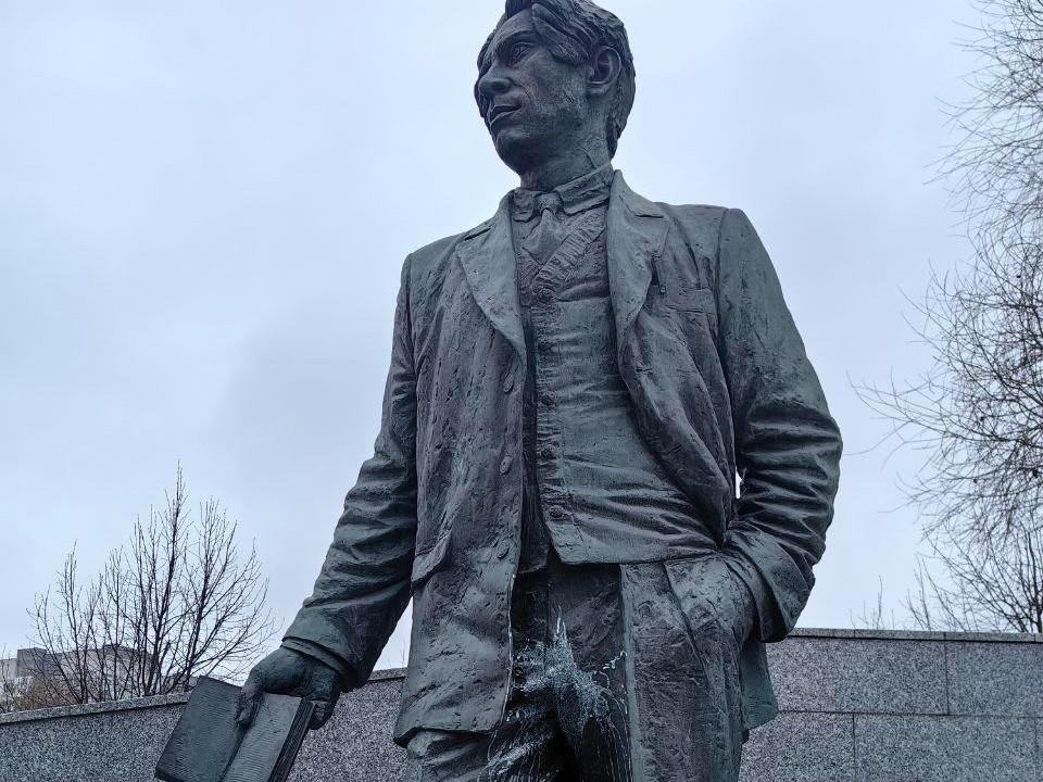 Неизвестные вандалы облили белой краской памятник татарскому поэту Хади Такташу в Казани. Монумент расположен в сквере на пересечении улиц Салимжанова и Хади Такташа, о чем в чате городской администрации сообщил один из жителей.