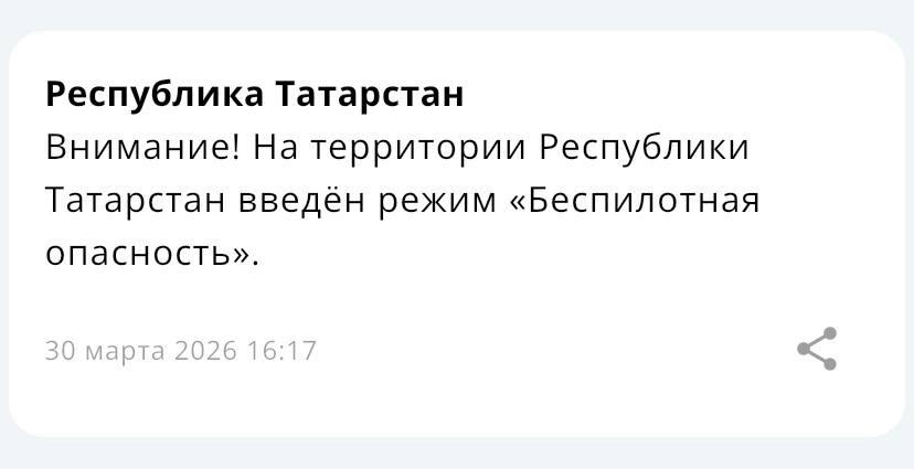 Ранее, в три часа ночи, уже действовал аналогичный режим, который продлился шесть часов. В Альметьевске население дополнительно предупредили об угрозе атаки дронов и призвали укрыться в безопасных местах.